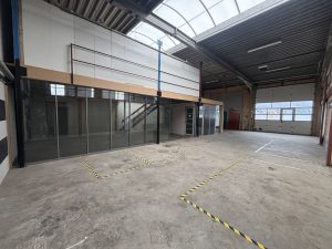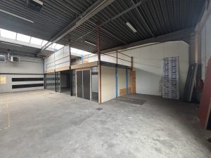 Industrieweg oost 9 C , 280 m2 bedrijfshal excl. kantoren met opslag op 1e verdieping en parkeerplaatsen op voorterrein en eigen afgesloten terrein achter.